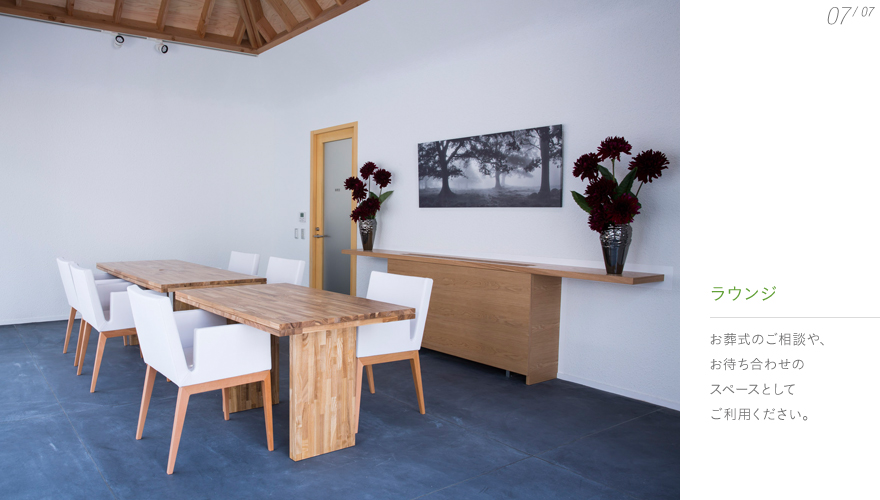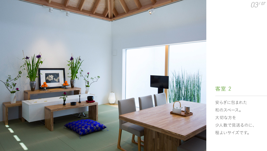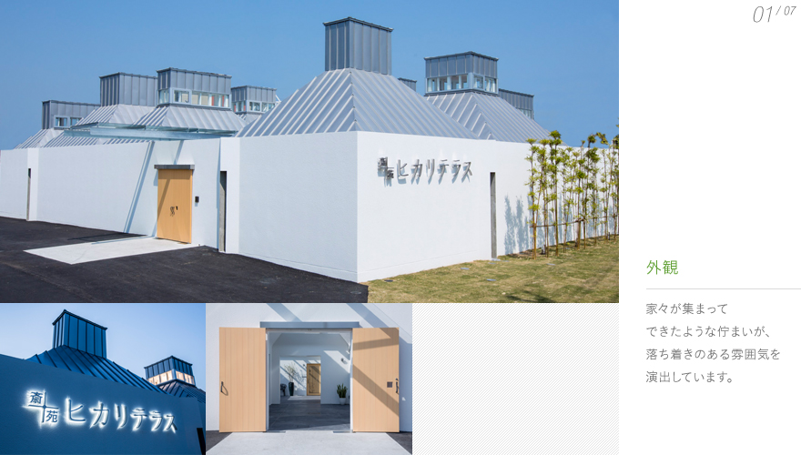 光と木の温もりに満ちた空間 小さな家々が集まったような「斎苑ヒカリテラス」は、 日の当たる場所である「テラス」と、 家族の絆を「照らす」という想いから名付けました。 やわらかな光と木の温もりにあふれ、 家族みんなの心安らぐ時間が、家中に広がっています。